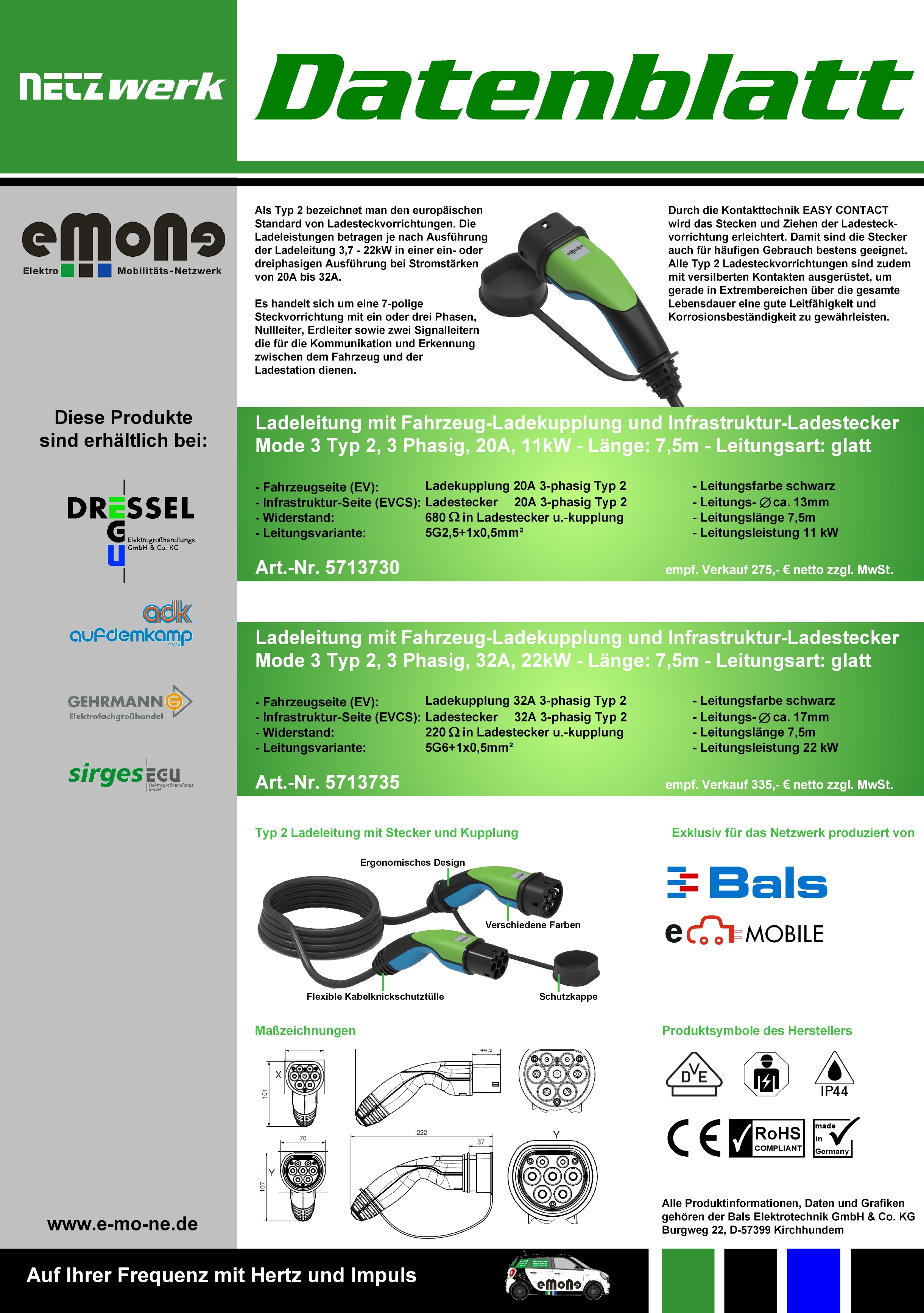 Unsere Ladeleitung Typ 2 emone: (Datenblatt)